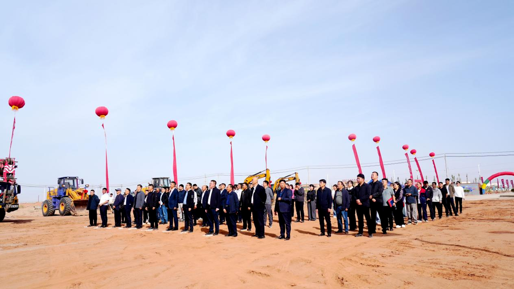 奠基仪式现场彩旗招展,工程车辆整齐列阵,氛围热烈庄重。温宿县领导姚国斌,温宿国家农业科技园区、温宿产业园区班子成员,县直相关部门负责人、企业代表及特邀嘉宾共同挥锹培土,宣告项目正式进入建设阶段。